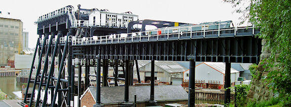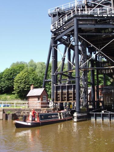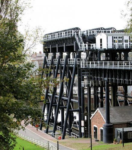 A unique hydraulic lift, opened in 1875 to speed the passage of cargoes between the Trent & Mersey Canal and the Weaver Navigation