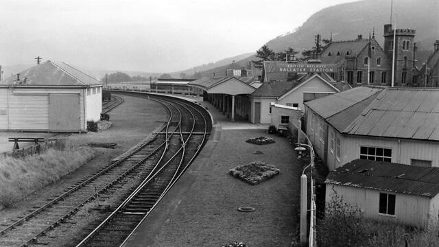 When the Deeside line was built as far as Ballater in 1866 it had been intended to continue as far as Braemar. However Queen Victoria did not wish the railway to pass through the royal estate and so the extension beyond Ballater was terminated. Ballater became a terminus. A road bridge at the terminal end of the platform is evidence of the further mile of line constructed before the project was aborted.