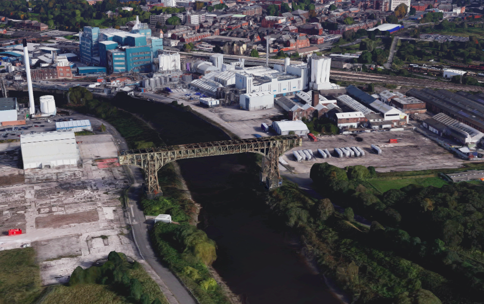Text and photos from Friends of Warrington Transporter Bridge, aerial photo from Googlemaps - with thanks.