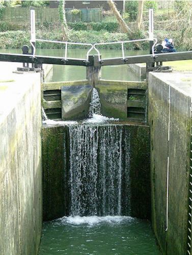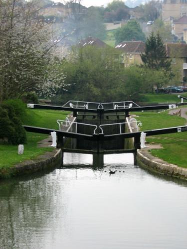 Bath Bottom Lock, which is numbered as No 7 on the canal is the meeting point with the River Avon just south of Pulteney Bridge. Alongside the lock is a side pond and pumping station which pumps water up the locks to replace that used each time a lock is opened.