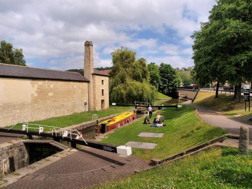 A series of locks on the Kennet & Avon Canal near the centre of Bath.