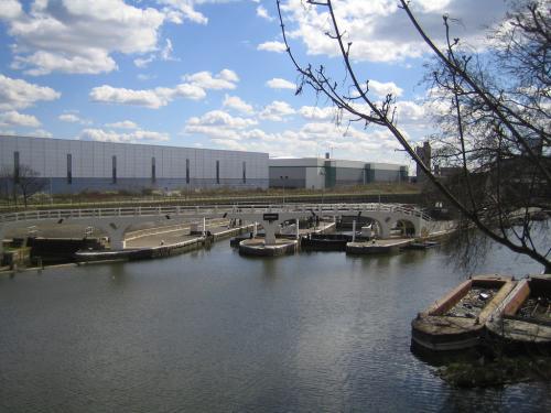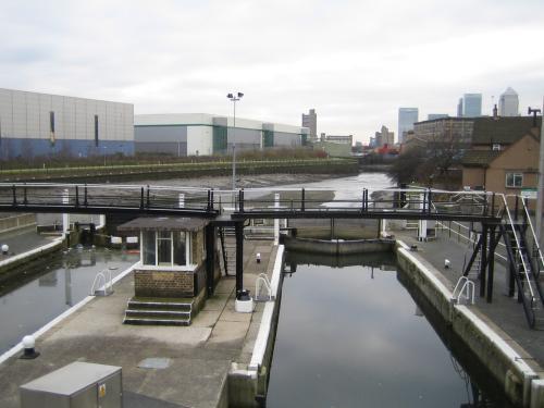 Bow Locks were first built in 1850 and then rebuilt in 1930, at the same time as the Prescott Channel was cut nearby. At high tide, the tide from Bow Creek used to flow through Bow Locks to raise the level of the canals, such as the Limehouse Cut. But in 2000 these locks were modified to keep the tide out and to reduce silting in the canal system.