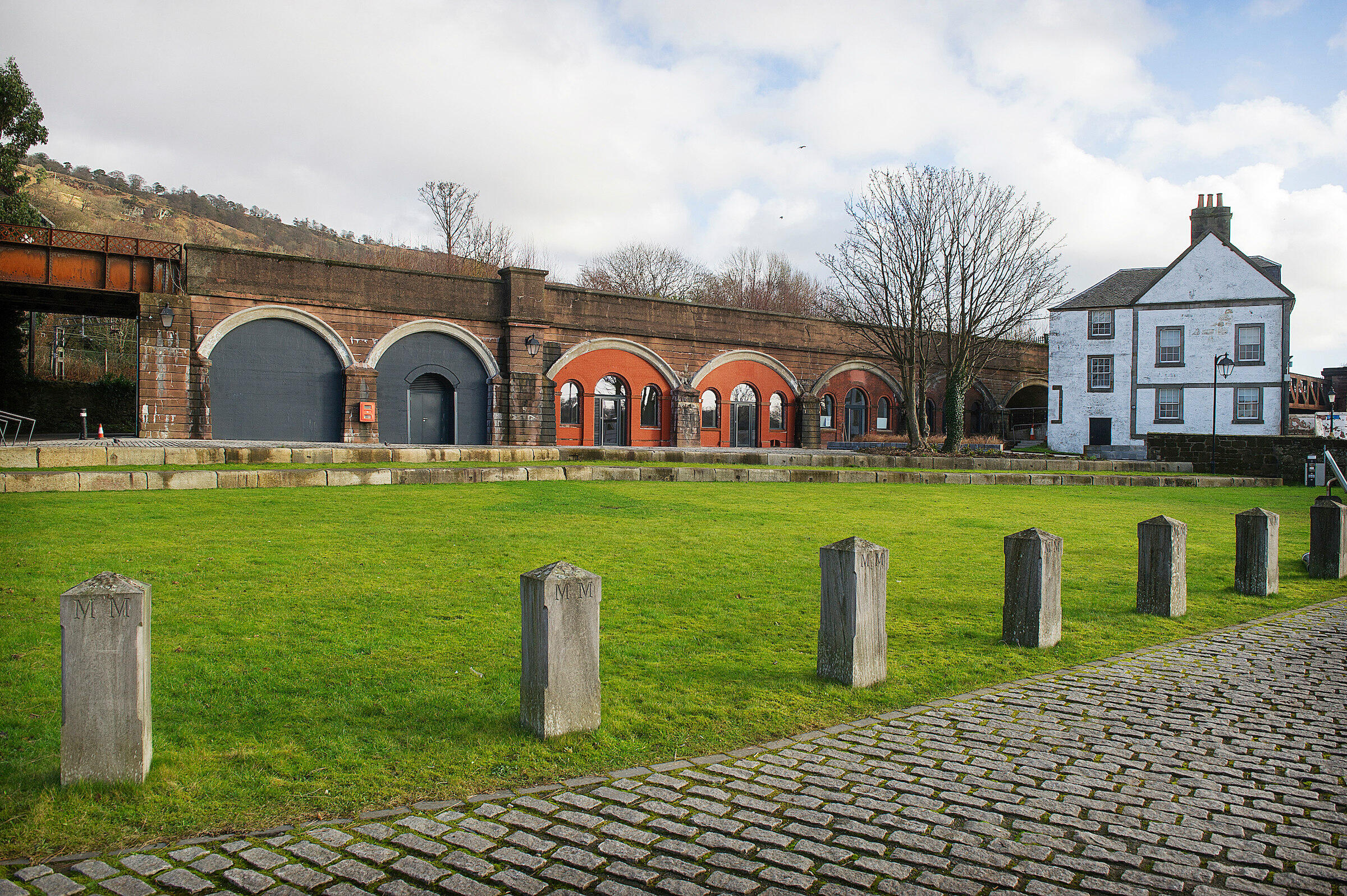The bridge can be viewed from West Highland and North Electrics trains on the adjacent North British Railway route