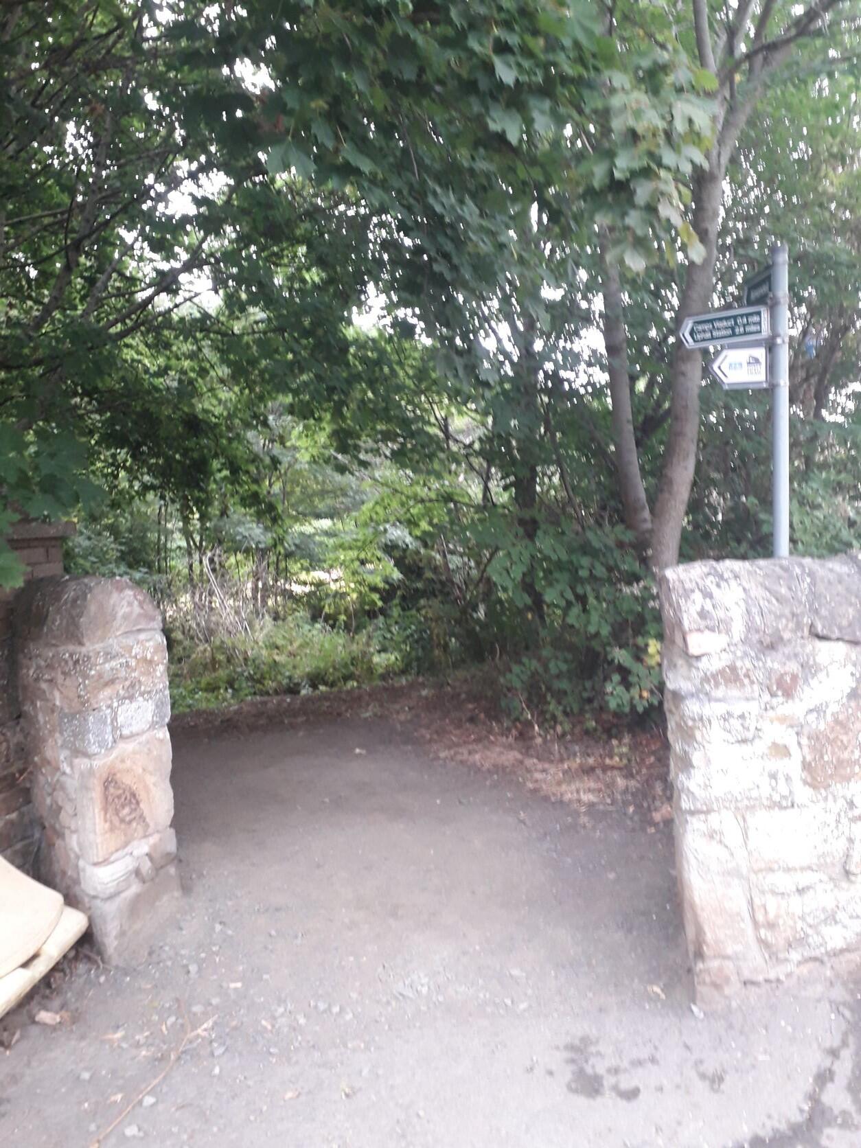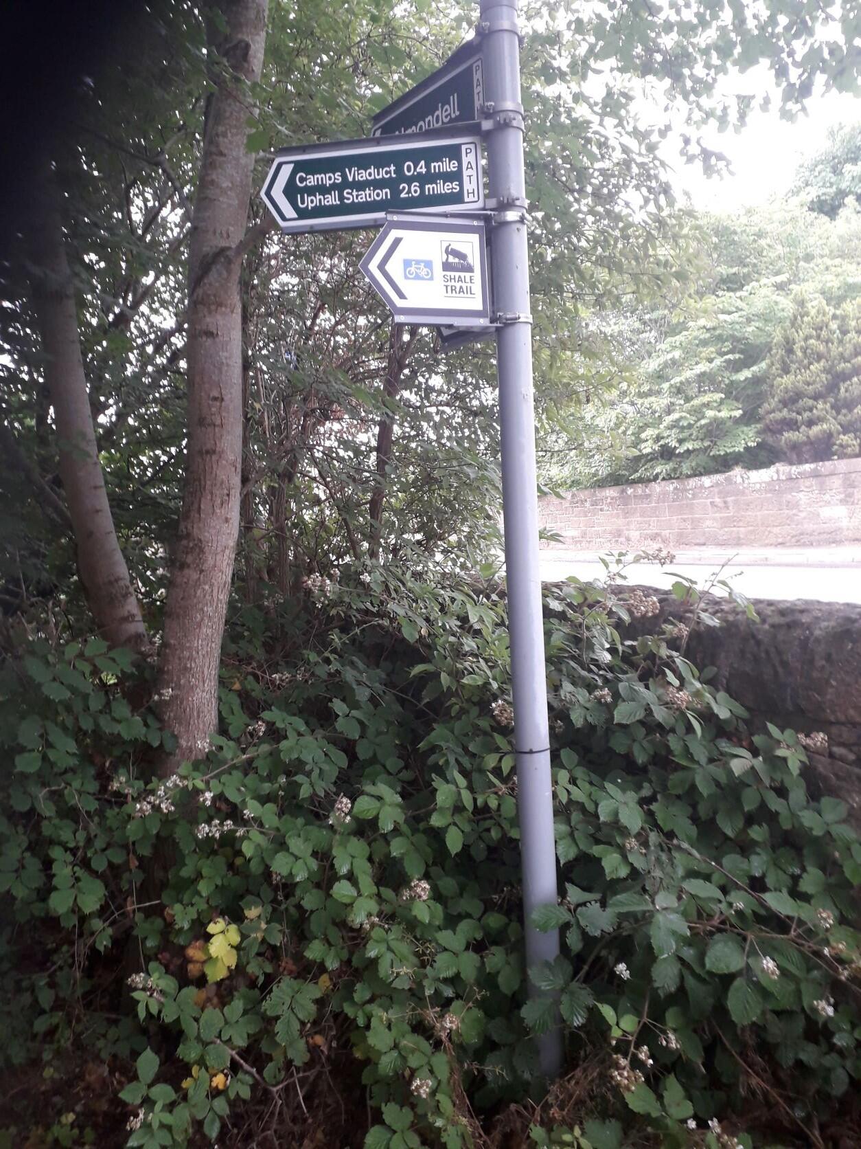 the Shale Trail footpath and cycle-route signed from Main Street, East Calder leads down onto the trackbed which heads across a field to cross the viaduct. At the far end steps lead steeply up from the riverbank route that follows the River Almond through Almondell Country Park. The trackbed continues through wooded countryside, skirting the onetime shale-oil centre of Pumpherston to end up by the carpark at the present Uphall Station, on ScotRail’s Edinburgh-Bathgate-Glasgow-Helensburgh line.