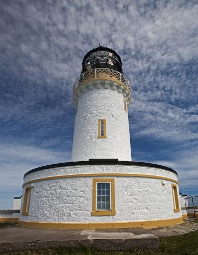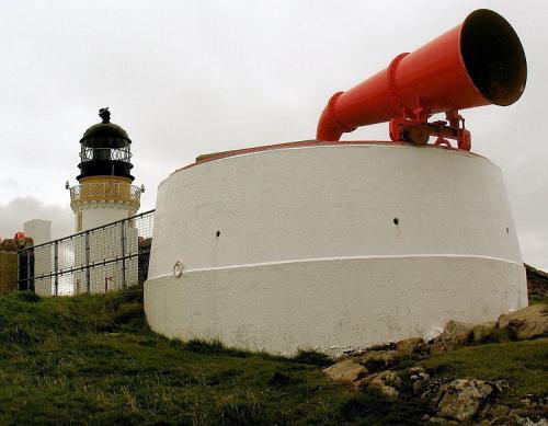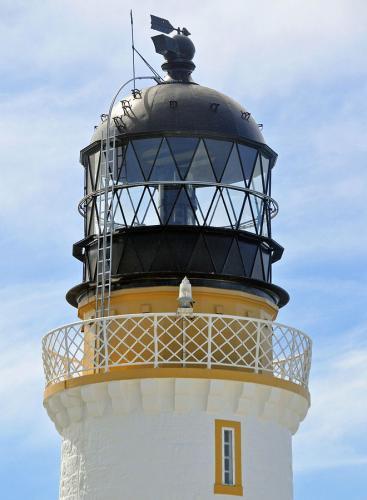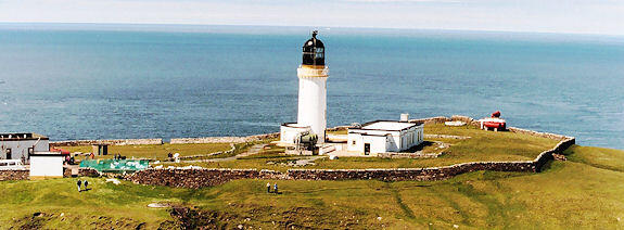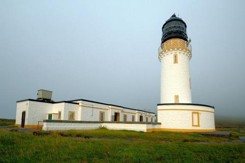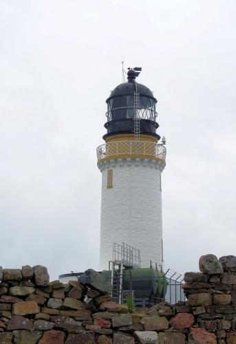 The lighthouse marks the most north-westerly point of the British mainland. It was built in 1828 by Robert Stevenson and manned until 1998, when it was converted to automatic operation by the Northern Lighthouse Board. Overlooking the Cape are the ruins of the Lloyd's signal station which was used to monitor shipping.