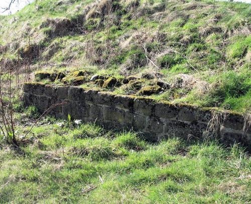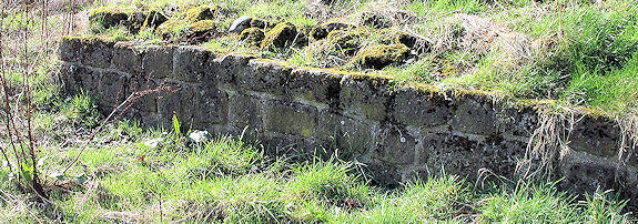 The second bridge was far more massive, with splayed wing walls both north and south of the bridge's actual line. This abutment, its massive rectangular stones lifted into place using the lewis holes which are a feature of their upper surface, were held together with long iron ties channelled into the masonry to reinforce the front face. The lewis-holes widen as they penetrate. The lewis consisted of a split wedge which, after being inserted in the hole, was widened out to lock into it by the insertion of a strip of metal between the two halves of the wedge. The hook of the crane was then passed through the head of the lewis and the stone was ready for lifting.