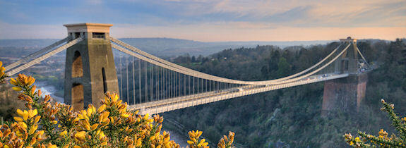 A suspension bridge which spans the Avon Gorge and links Clifton in Bristol to Leigh Woods in North Somerset.