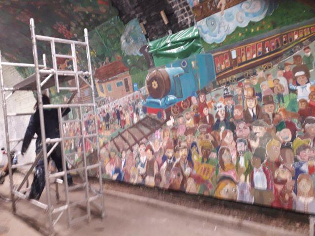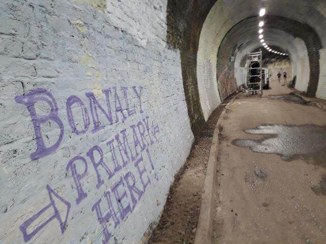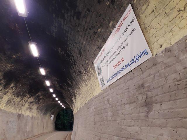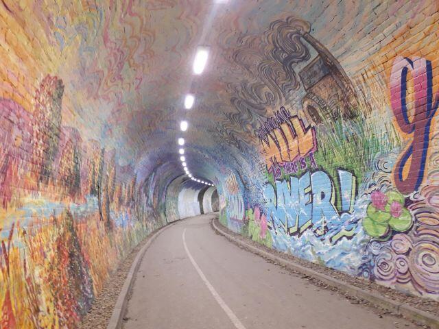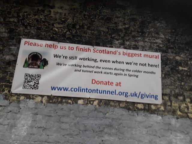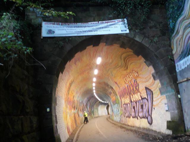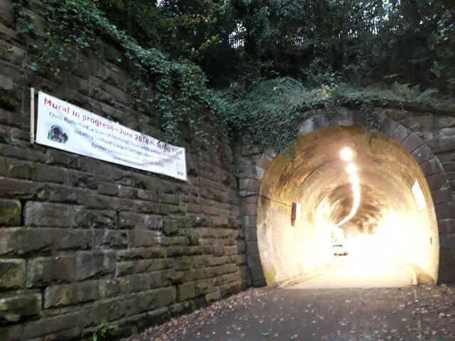 Disused railway tunnel 140 metres long which became part of a walkway and is now home to Scotland's longest mural.