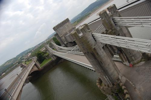 Built by Thomas Telford, this is a suspension bridge spanning the River Conwy next to medieval Conwy Castle, a World Heritage Site. The bridge was completed in 1826 and replaced the ferry at the same point.