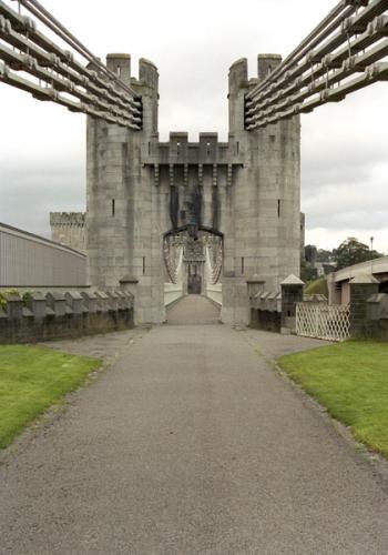 Telford matched the bridge's supporting towers with the castle's turrets. It is in the same style as one of Telford's other bridges, the Menai Suspension Bridge crossing the Menai Strait. Built into the rock on which Conwy Castle stands, it is very close to the castle and only about 2.5m(8.2 ft) wide. Part of the castle had to be demolished during construction in order for the suspension cables to be anchored into the rock.