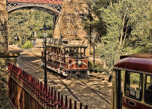 Disused quarry with a mineral railway built by George Stephenson, now a world famous tramway museum.