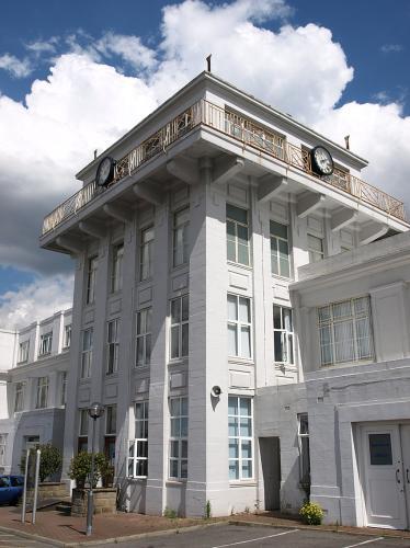 The terminal building, the booking hall within it with its gallery balustraded in the geometrical design typical of the period, and the Aerodrome Hotel were built in the Art Deco style of the 1920s and 1930s. A further item that caught the eye of visitor and traveller alike was the time zone tower in the booking hall with its dials depicting the times in different parts of the world.