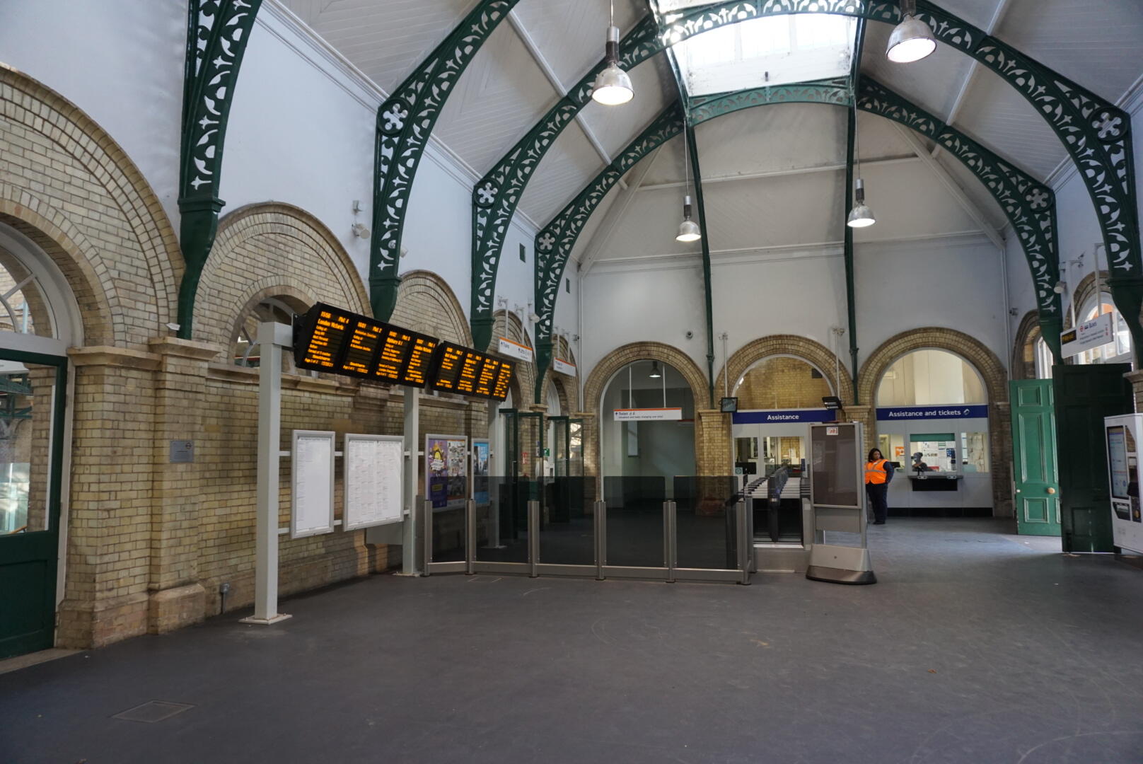 The frontage of the station was rebuilt in 1875, and was described: "Although the Roman Catholic chapel room is no longer used the station still has a cathedral-like atmosphere as one passes from the period booking hall to the vault-like station and the stairs down to the original station area"