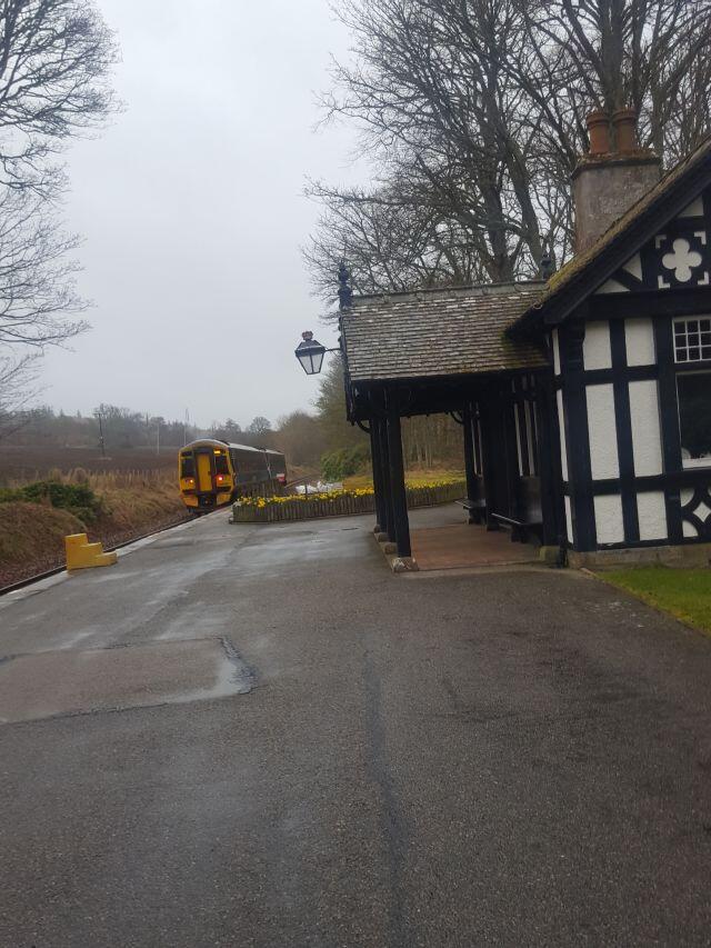 Charming half-timbered station serving the home of the Dukes of Sutherland on the line built planned and financed by the Third Duke to boost the local economy - opened 16th May 1871