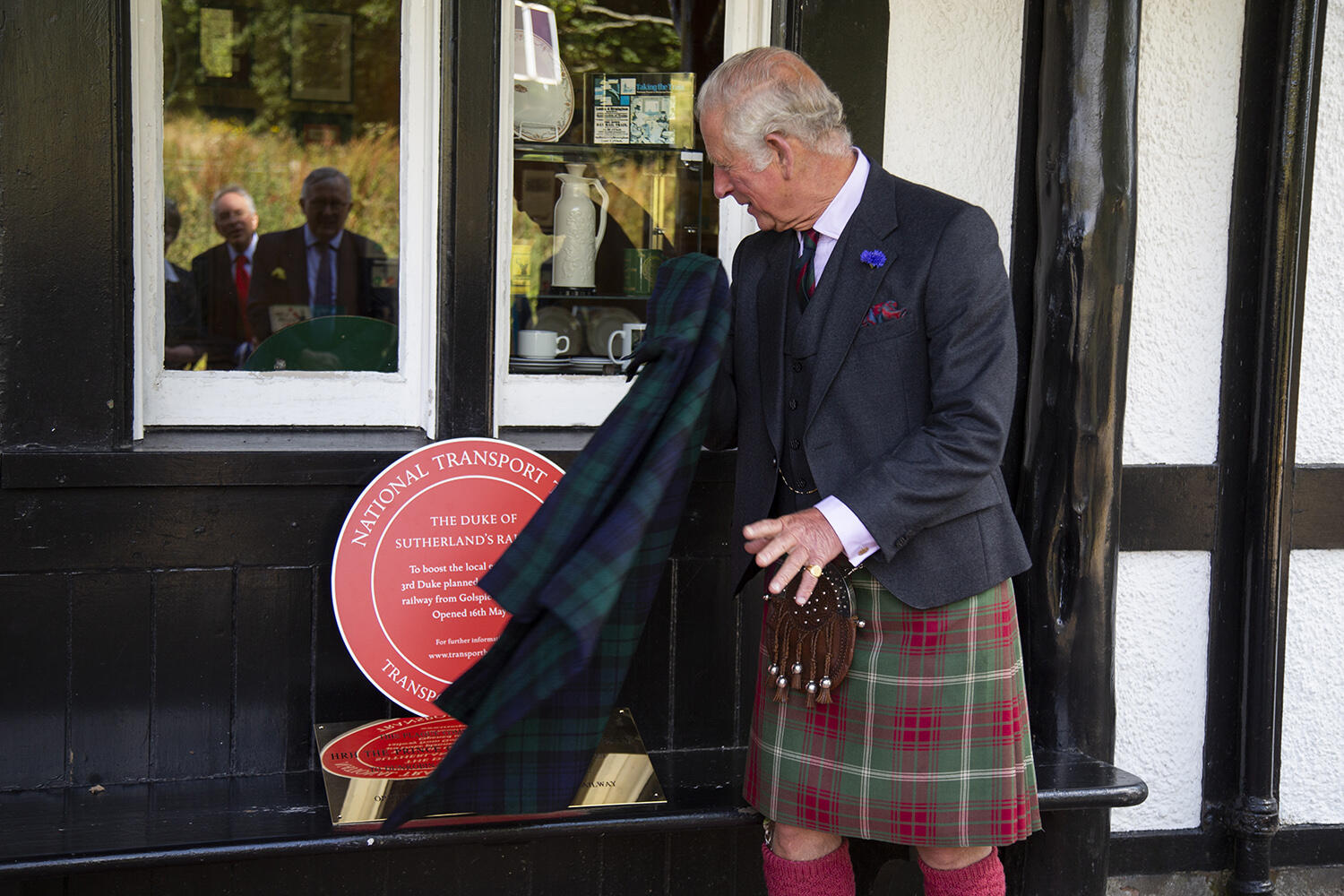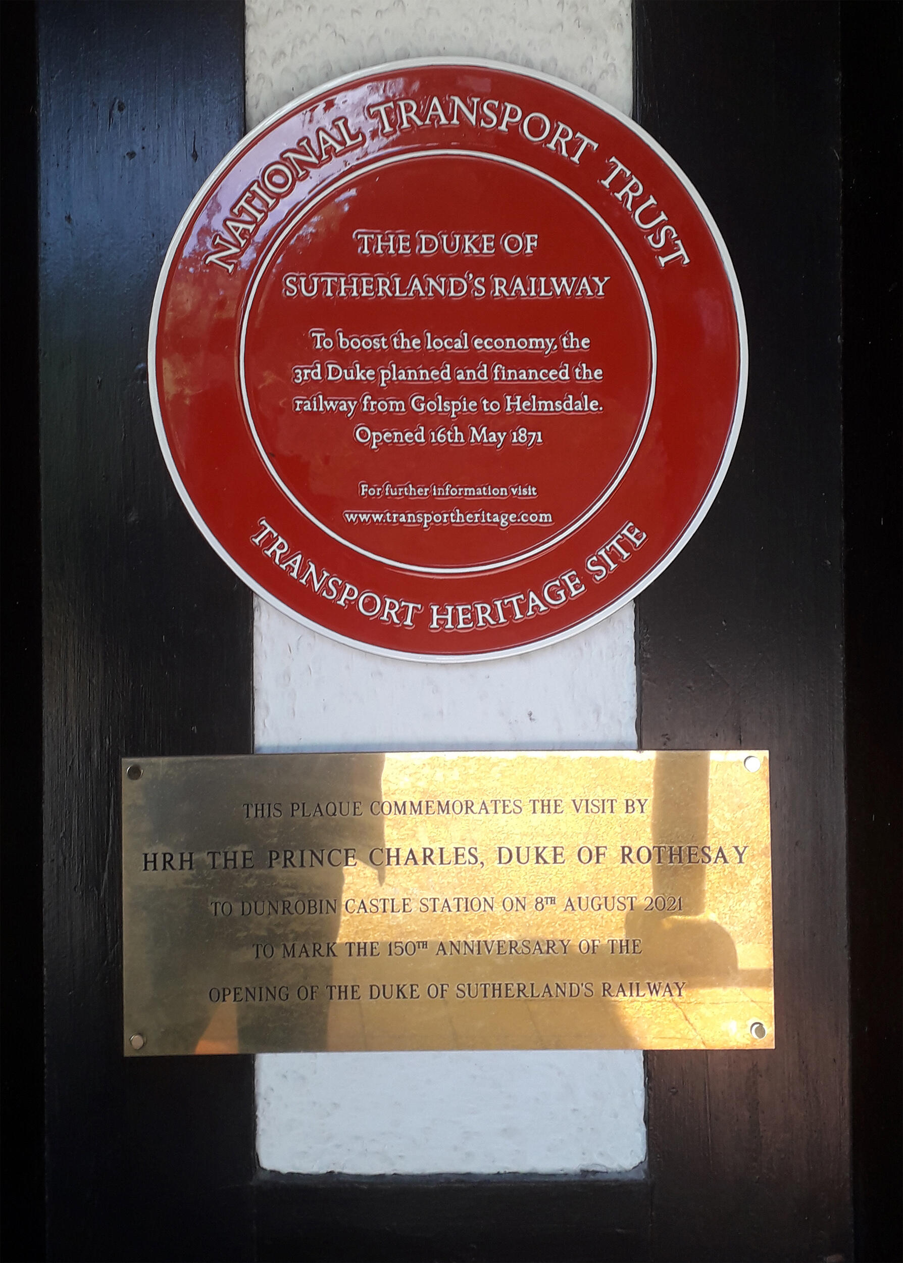 The Red Wheel Heritage plaque was unveiled by His Royal Highness, The Prince Charles, Duke of Rothesay when he visited Dunrobin Castle Station on 8th July 2021 at the invitation of Network Rail's Alan Ross.