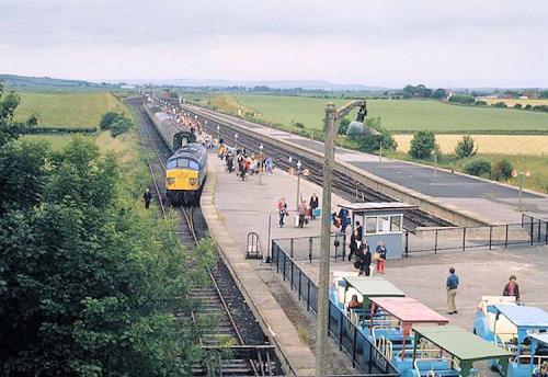 Butlins became popular in post-war Britain with extensive family entertainment and activities available for the equivalent of a week's pay.The site was very close to the mainline, so a dedicated station was constructed in 1947; when it opened,almost all of the holiday makers traveled to the camp byrail but, with the passage of time,an increasing number turned to the car. Eventually,it became uneconomic to keep the station open and the last train ran on Saturday 17 July 1977; the rails had been lifted within a year.