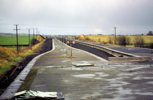 The platforms, concourse, exit steps, fencing and even concrete lamp posts remain in situ. The holiday campsite itself is now derelict, with the outline of the enormous monumental lake and swimming pool still visible. The once vital passenger subway has been backfilled and flooded. (See also Filey Station)