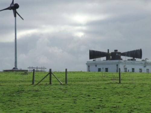In 1825 further improvements resulted in the installation of a fountain oil lamp and the raising of the lantern by another 1.5 m (5 ft). Another improvement in the light was made in 1867 when a new lantern 4 m (13 ft) in diameter was installed, which remained in use until 1969. The light was converted to occulting in 1881 by the installation of a clockwork operated mechanism. Subsequent improvements were the installation of a Douglass incandescent burner in 1904 and its replacement by a Hood petroleum vapour burner in 1923. In 1908 a powerful compressed air fog signal having two horns was installed in a separate building erected for the purpose.