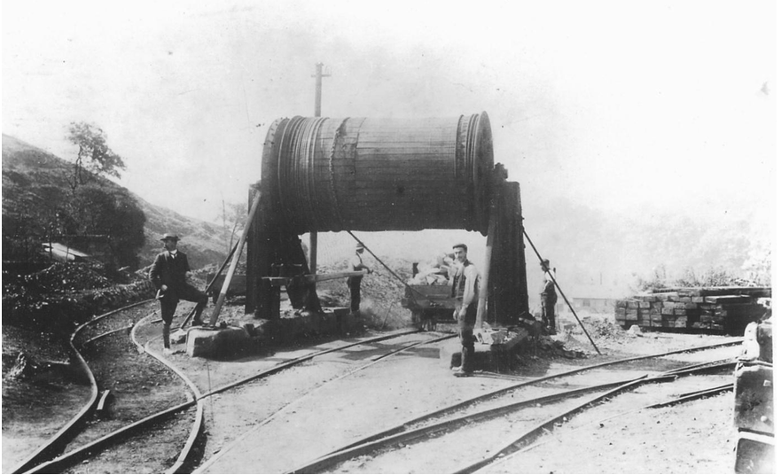 Winding drum at top of 1st incline from the wharf. The track to the left would take limestone to the top of the 6 lime-kilns. The track to the right takes limestone to the top of the two lime kilns at the end of the canal.