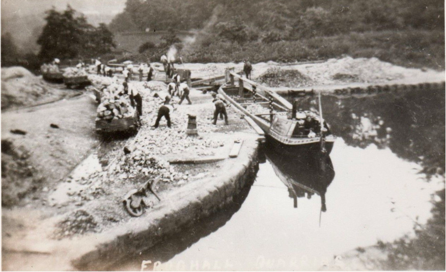 Entrance to Uttoxeter canal. Loading limestone onto barge.