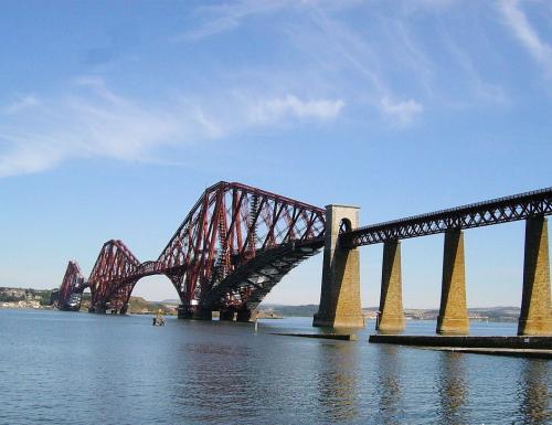 A cantilever railway bridge over the Firth of Forth, the world's first major steel bridge.