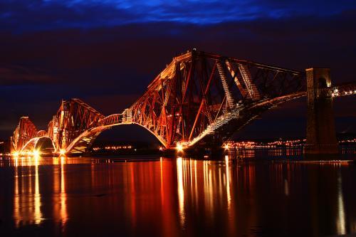 Each of the 110 m. high double-cantilevers is supported on well-founded granite faced piers. The bridge's construction involved the employment of 4,000 men at times, the use of 54,000 tonnes of steel and the driving of 6,5 million rivets. Its total cost was £3,200,000, a phenomenal sum in its day.
