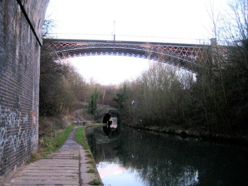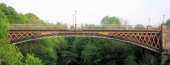 Galton Bridge is a canal bridge in Smethwick, West Midlands, built by Thomas Telford in 1829. It spans Telford's Birmingham Canal Navigations New Main Line carrying Roebuck Lane. When it was constructed, its single span of 46 m (151 ft) was the highest in the world; at the time, Telford's Menai bridge was the longest.