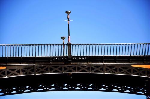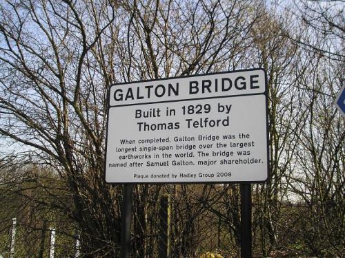 It is similar to Holt Bridge, Telford's Grade II listed bridge over the River Severn at Holt in Worcestershire and was named after Samuel Galton, a member of the Lunar Society. It was cast by Horseley Ironworks.