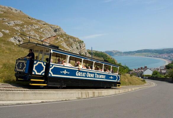 The Great Orme Tramway (Welsh: Tramffordd y Gogarth) is a cable-hauled 3 ft 6 in (1,067 mm) gauge tramway in Llandudno in north Wales. It is Britain's only remaining cable operated street tramway and one of only three surviving in the world. Operation of the tramway differs from the better-known San Francisco system in that it is not a self-propelled cable car but rather a street running funicular. The cars are permanently fixed to the cable and are stopped and started by stopping and starting the cable. As one car is ascending, the other is descending, and they meet midway.