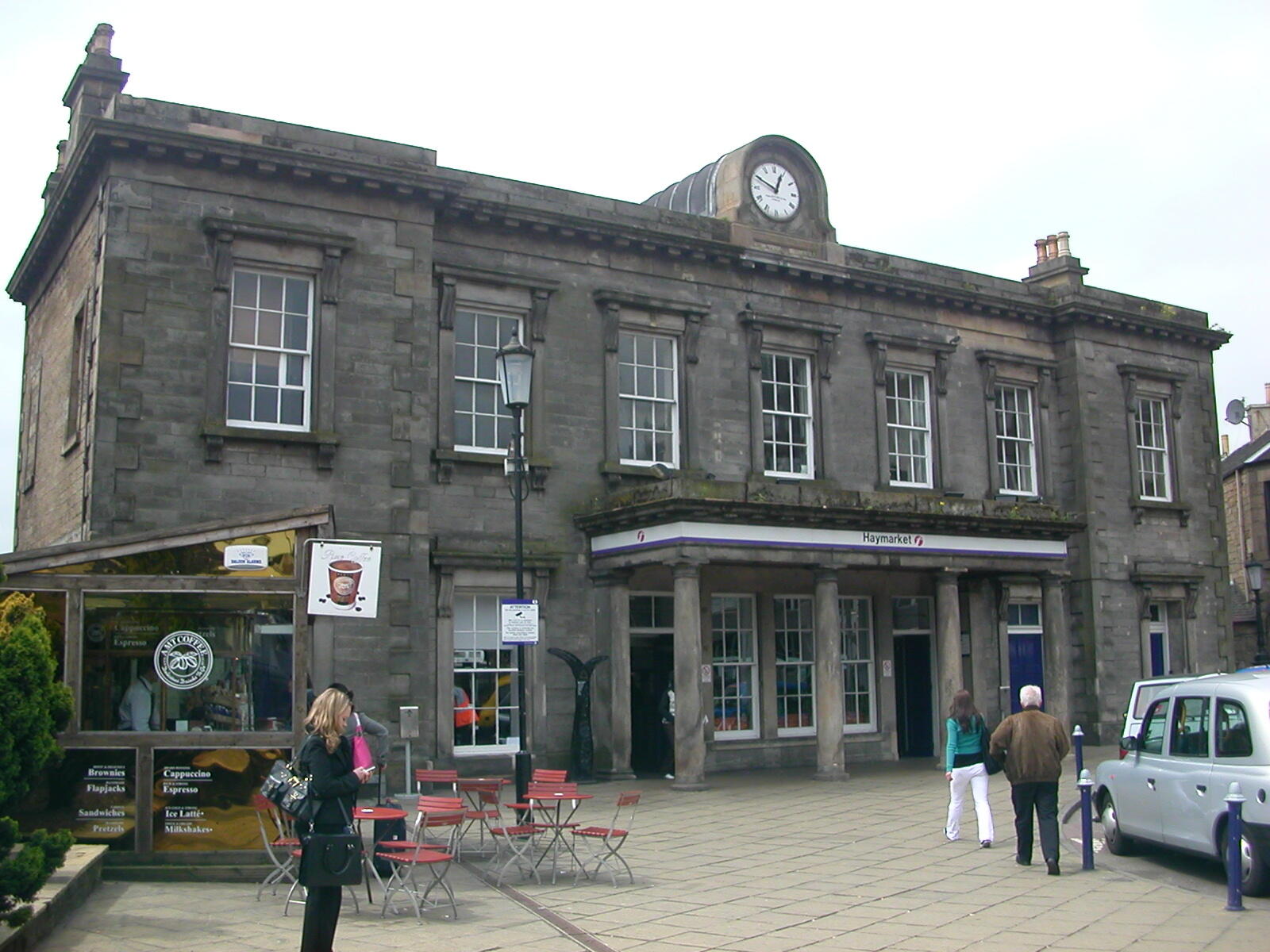 Built in 1842 it was the first proper station in the city. Haymarket's importance declined when the railway was eventually pushed through to Waverley, but it survived. Its Georgian facade with clock and Doric columned porch reflected its early role as both terminus and company headquarters, and it is a listed building. The train shed has been removed to the Bo'ness & Kinneil Railway.