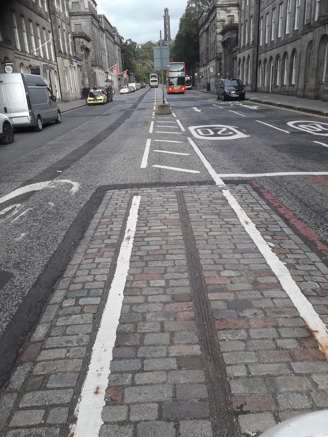 The cable-hauled trams operated by gripping on to a continuously moving cable located within a groove between the rails. A small section of cable tram track survives at Waterloo Place Waterloo, which is the eastward continuation of Princes Street from its intersection with North Bridge and Leith Street.