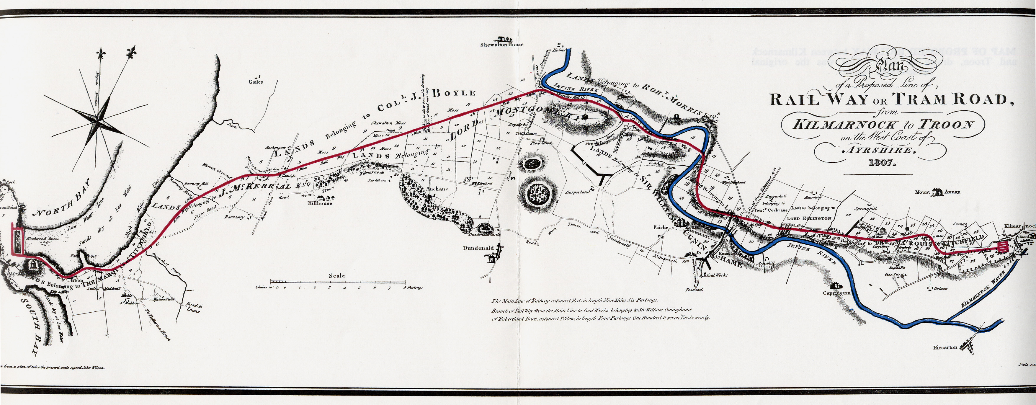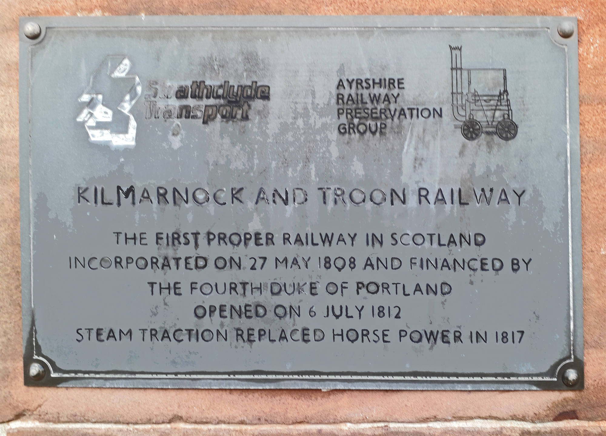 The Kilmarnock & Troon Railway Opened 1812 as a horse-drawn 4 ft-gauge plateway – the first in Scotland to convey passengers. Converted 1846 to a contemporary railway.