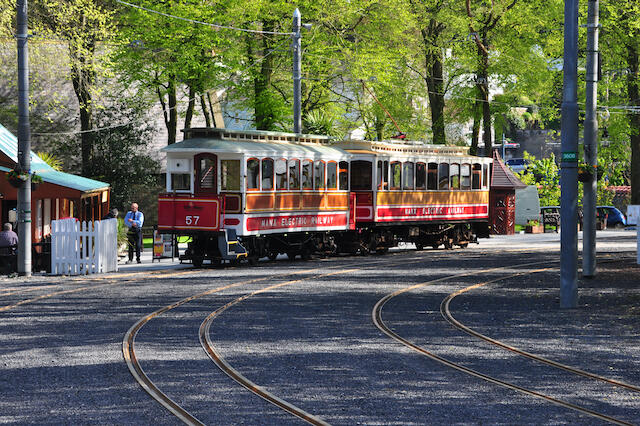 Built in just 17 months in 1895, this 5-mile 3ft 6in (1067mm) gauge tramway uses the centre rail for emergency braking on the 1 in 12 gradient.