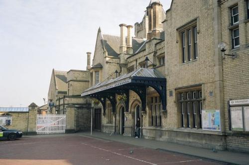 This station was designed by J.H. Taylor, an architect practicing in London. It was completed in 1848 two years after the Midland Railway station at St Marks nearby. It contrasts with the latter with its Tudor flavour, castellated tower, mullion windows, tall chimney stacks, and even an oriel window. It is now the only station in central Lincoln, as St Marks was closed in 1985 and is now part of a shopping complex.