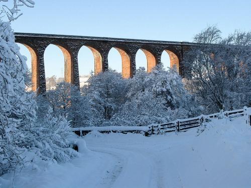 The Nairn or Clava viaduct spans the River Nairn somewhat north of its mid-point, near Clava, about 6 miles east of Inverness. It was opened in 1898 by The Highland Railway as part of the Inverness and Aviemore Direct Railway and it still carries the main railway line south from Inverness today. This double-track viaduct is the longest masonry railway viaduct in Scotland.