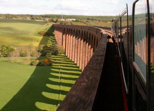 Built between 1893 and 1898 by Sir John Fowler and Murdoch Paterson, it curves across the valley for 549 m (600 yds) and is the longest viaduct of its kind in Scotland. Its twenty eight spans are all 15.2 m (50 ft) wide apart from the span crossing the river which is 30.5 m (100 ft) wide. The sandstone used to build the viaduct came from the nearby Leanach Quarry.