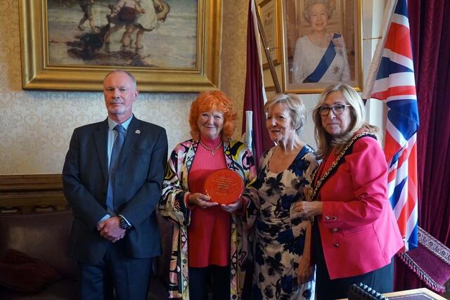 Lady McAlpine was presented with a commemorative glass plate by the Mayor