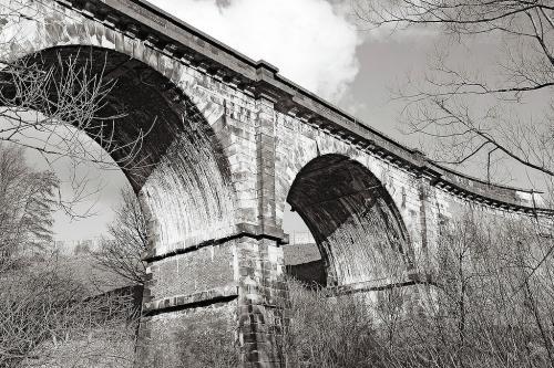 Designed by George Stephenson and opened in 1830 to carry the Liverpool & Manchester Railway over the Sankey valley and canal. The earliest major railway viaduct in the world.
