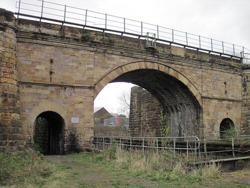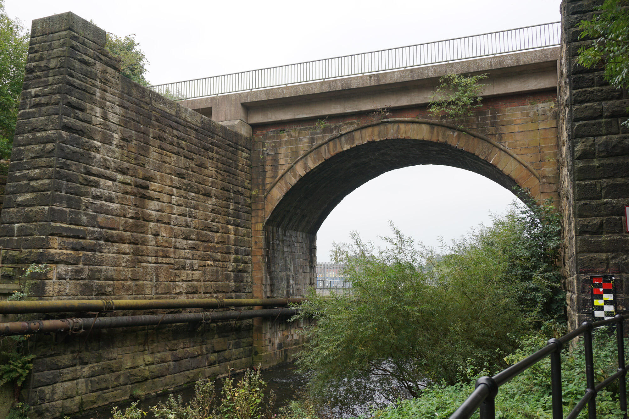 The bridge spans the Skerne at the north end of Darlington. This was the biggest ravine on the Stockton & Darlington Railway, which opened on September 27, 1825. Initially, George Stephenson was briefed to build an iron and stone bridge across the ravine, but then his first iron and stone bridge over the Gaunless at West Auckland was washed away, so the railway directors had second thoughts.