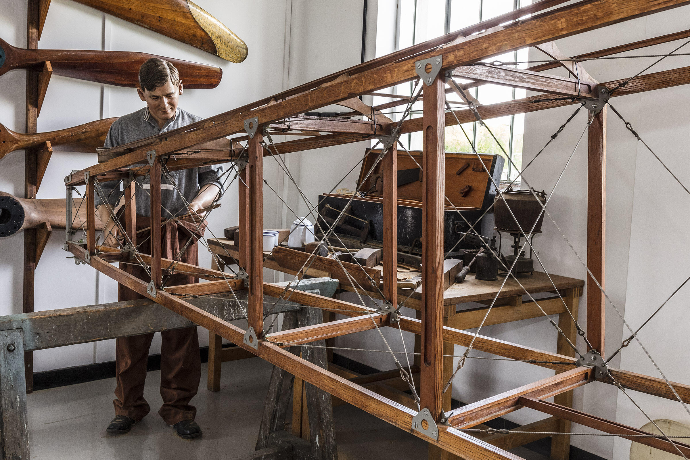 Figure 7: Stow Maries Staff preparing a Sopwith Camel for flight Ops.