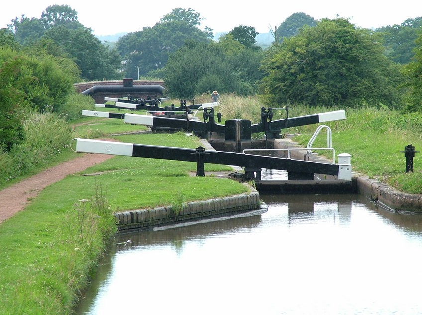 Summit of the 30 lock Tardebigge fight - the longest in the UK. From 1810-1814, site of an experimental man-powered boat lift