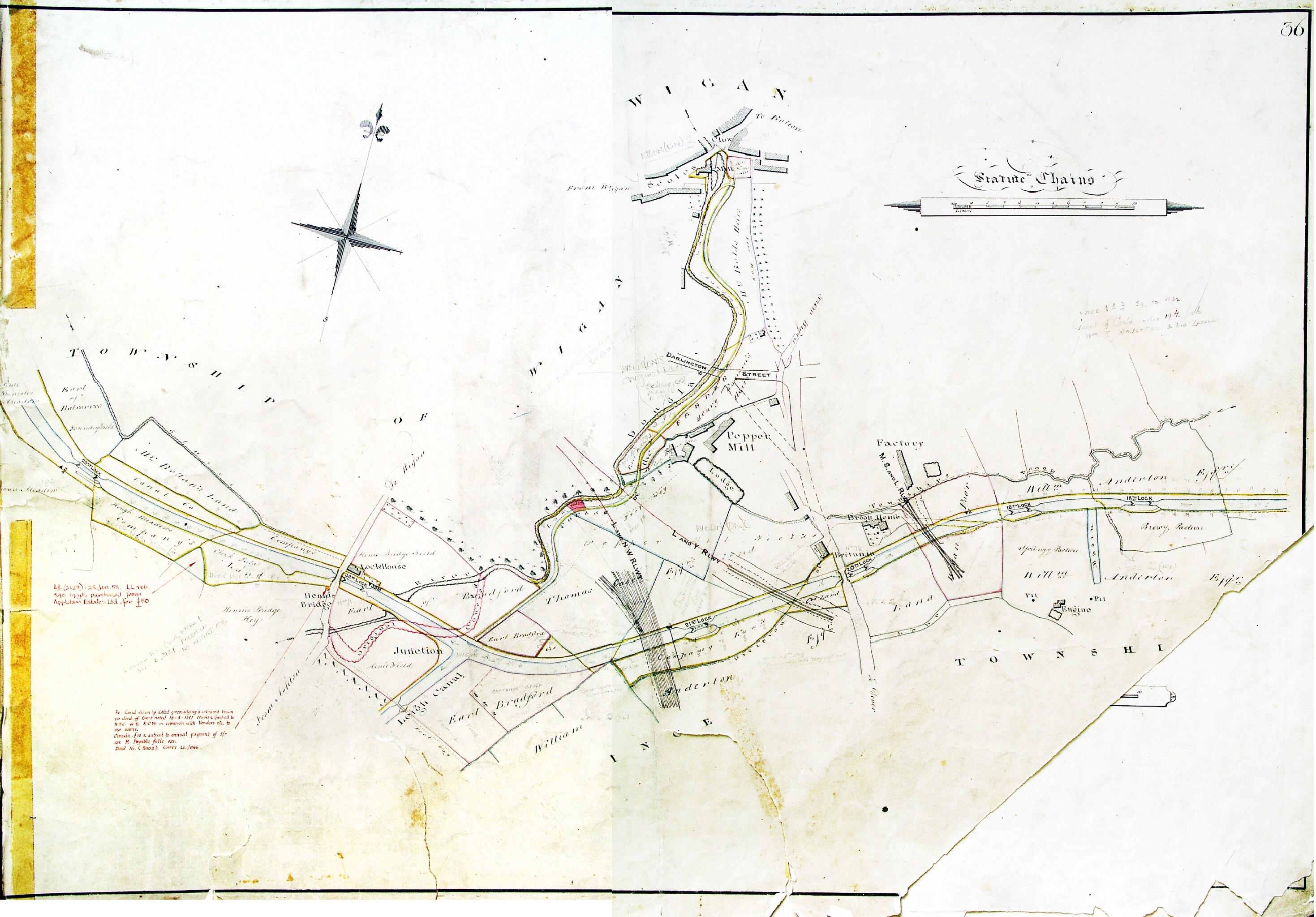 The first set of specifications for the works share this same date – 21st October 1812 – and included for the digging of the bottom three quarters of a mile of canal from the basin on Wallgate to Warrington Road. The specifications included four locks, three bridges (including Britannia Bridge) and an aqueduct to take the canal over the River Douglas. The specifications optimistically required these works to be complete by 1st November 1813.