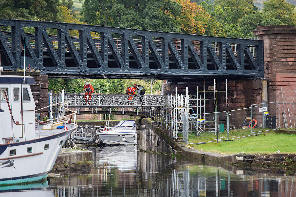 former Swing bridge at Bowling Harbour in West Dunbartonshire that carried the Lanarkshire and Dunbartonshire Railway across the upper and lower basins at the western entrance to the Forth & Clyde Canal and after a half-century of disuse is being developed as an active travel route