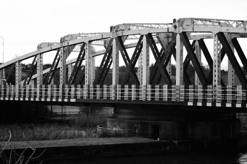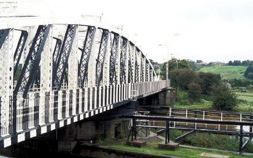 The River Weaver was canalised in the 18th century, linking Northwich and Winsford with the sea in order to improve the transport of salt. Before that, salt was moved by road to the nearest navigable part of the river, which is north of here at Frodsham. To begin with, sailing flats were used to move the salt, although they weren't sailed when on the river, but hauled by men on the banks. After a towpath was constructed, horses replaced the men. Once steam barges came into use, more headroom was needed beneath the road bridges, so these were replaced by bridges which swung to one side to allow the boats to pass.