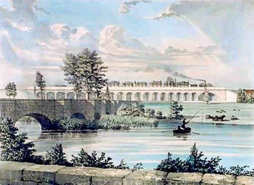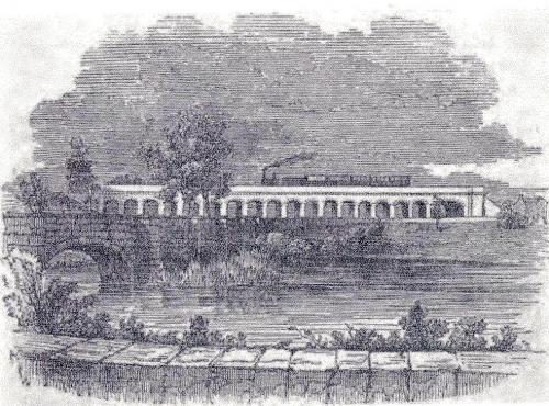 From 1836 onwards, work was in progress along the whole length of the forty one miles of trackbed from Derby to Hampton. At Hampton, the route would follow the existing London and Birmingham Railway line to its terminus at Curzon Street in Birmingham. The track was sufficiently ready for a test run on the 29th.May, 1839 when Robert Stephenson took the locomotive 'Derby' from Birmingham to Derby and back declaring that, in his opinion, everything was in order. Two days later a Board of Trade Inspector was due to visit the new line and pass judgement. He must have approved of what he saw because the 'Official' first train left Curzon Street Station at 10.20 a.m. on the 5th.August,1839, carrying the Board of Directors. It was hauled by the locomotive 'Tamworth'. The train arrived at Derby at 1.10 p.m. where the party was entertained with refreshments at a local hotel before returning to the station for the 4.00 p.m. departure for Birmingham. The public opening occurred on the 12th August,1839This viaduct was built to carry the Birmingham & Derby Junction Railway over the river Anker. It later became part of the Midland Railway. The viaduct was begun by George Stephenson but completed by his son Robert in 1839.