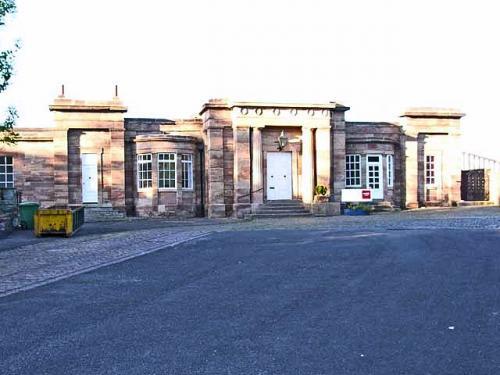 Both buildings were designed by R. Chaplin who is believed to have designed the station as well. This accounts for its refined classical form, with pillared portico, shallow bay windows, and square end pavilions, all single storey.