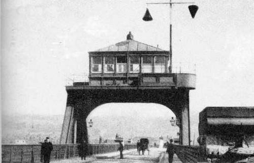 The builders were John Lysaght & Co.It was controlled from a cabin perched high above the bridge over the road section.