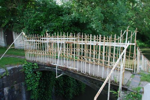 Above the top lock the canal passes through Sydney Gardens where it passes through two tunnels and under two cast iron footbridges dating from 1800. Cleveland tunnel is 53 m (173 ft.) long and runs under Cleveland House, the former headquarters of the Kennet & Avon Canal Company. A trap-door in the tunnel roof was employed to exchange paperwork between clerks above and bargees below. This is now a Grade II* Listed Building.