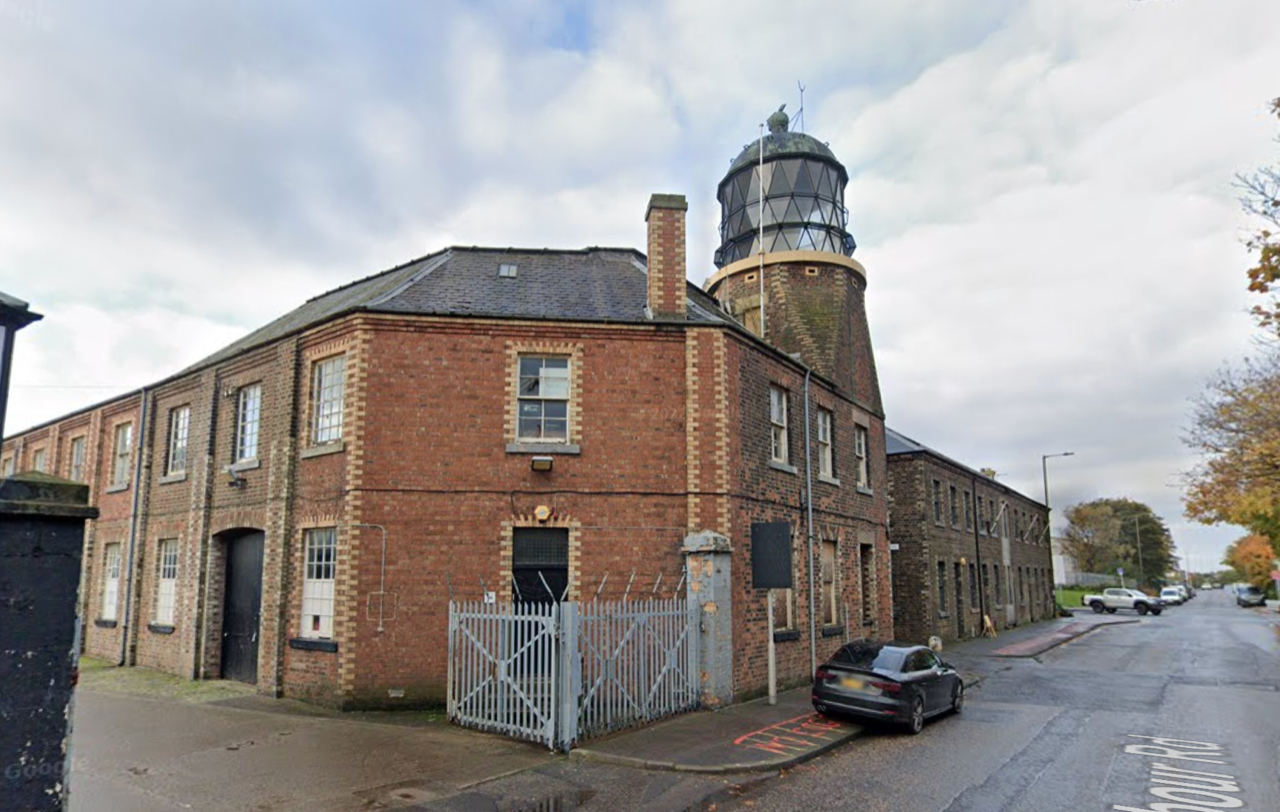 Former Northern Lighthouse Board Stores & Buoy Yard, the lighthouse tower was used to test equipment, train lighthouse keepers, and experiment with different lighting techniques