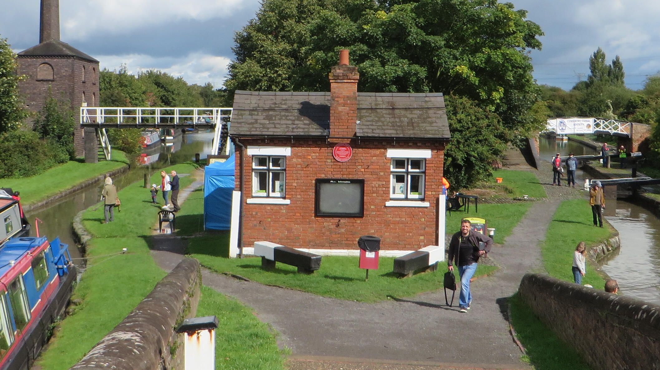 The engine or pump house is perhaps the most unusual and interesting of all the buildings in the conservation area, both historically and architecturally. A Grade II Listed Building, the lean-to at the rear is the oldest part and housed the first engine to be installed in 1821. This was a Newcomen type engine which had already seen around one hundred years' service at one of the local collieries. Named "Lady Godiva", it was used to raise water into the canal from a stream flowing underneath. However, by 1837 this supply proved inadequate and a 35 m (114 ft) shaft was sunk and a new, more powerful engine installed alongside "Lady Godiva" in the handsome three-storey building which now fronts the canal.